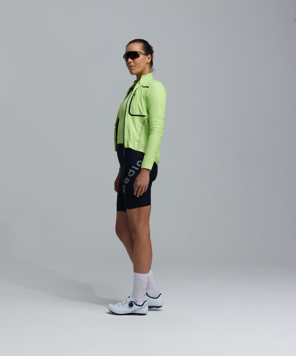 For on-bike mobility, 4-way stretch woven panels at the side body and undersleeves add range of motion and increase breathability. A high stand collar boosts coverage when the wind picks up. The SAB® waterproof two-way zipper gives reliable protection and quick temperature control on climbs and descents.